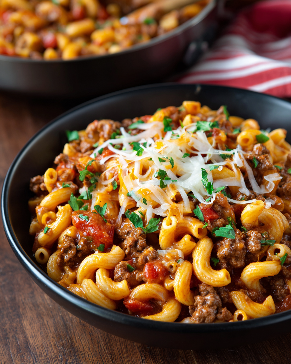 You can also stir in chopped kale or spinach at the end so it wilts without losing color. If you love spice add a handful of pickled jalapenos or a spoonful of green chili during the simmer. Seasonal tweaks keep this classic american goulash feeling new every time.