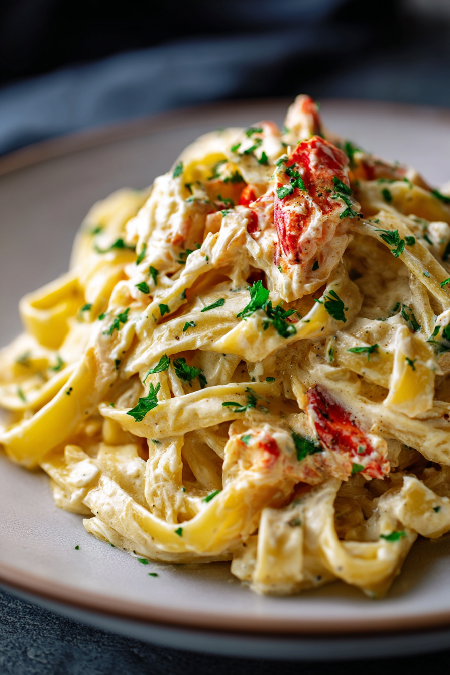 The way the crab taste mixes with the Alfredo sauce is really cool. The slight salty, sweet taste of the crab blends with that smooth creamy sauce to create a flavor explosion you don't forget. Every bite really shows off the best parts of both seafood and pasta.