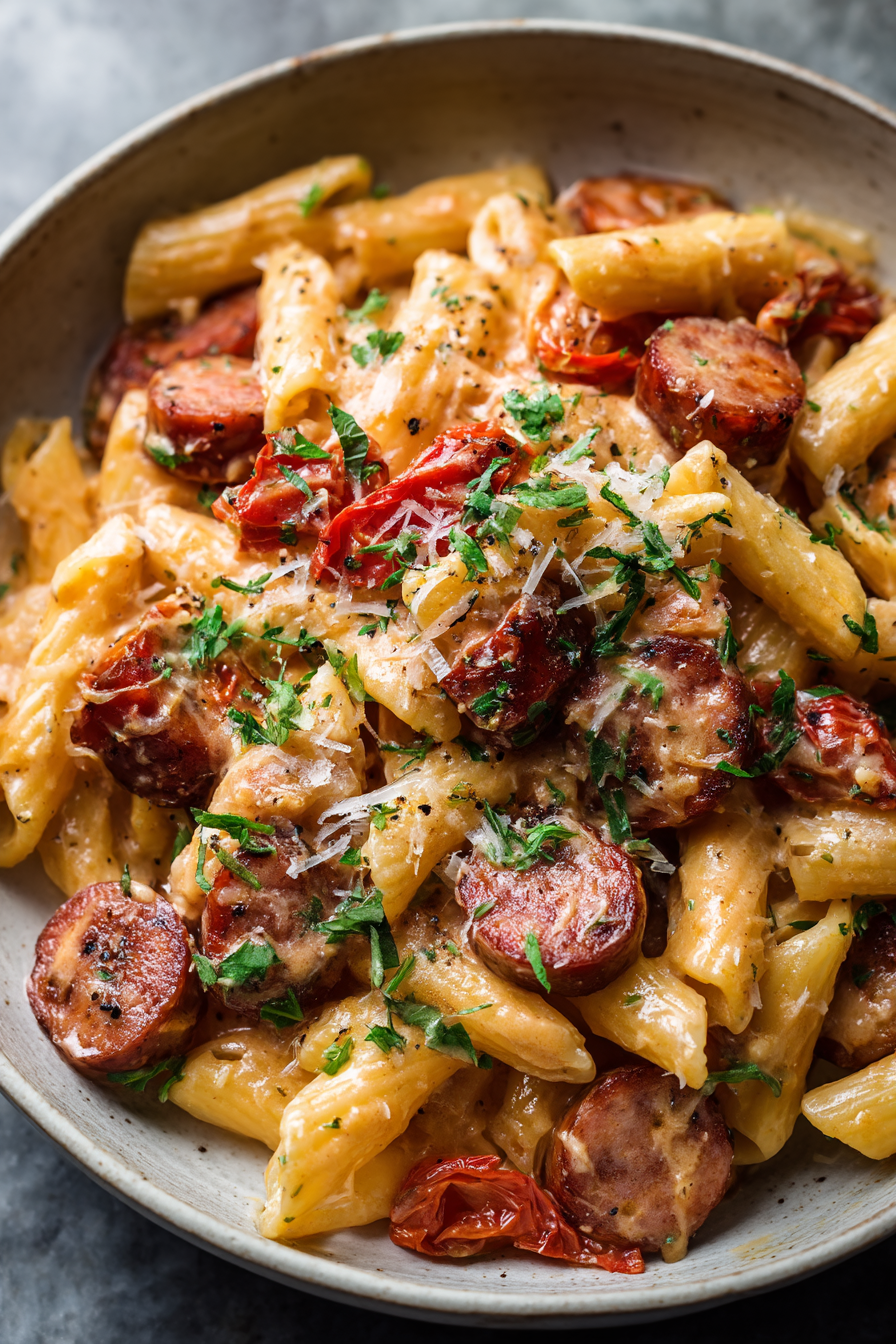 Creamy smoked sausage pasta is a hearty and comforting dish that mixes rich flavors and textures in a really satisfying way. Its easy to prepare, making it a perfect choice for busy weeknights or chill hangouts with family and friends. Try out this recipe and don't be afraid to mix it up a bit to match your own taste. Enjoy your meal!