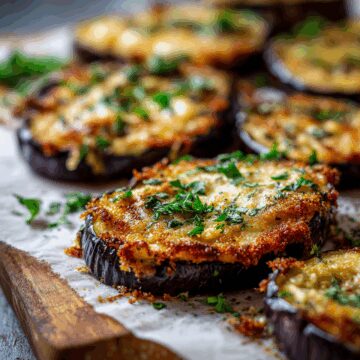 - Bake in the preheated oven for about 25-30 minutes, flipping halfway through for even cooking, until the eggplants are golden brown and crispy.