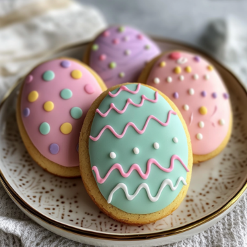 Delightfully crisp and tender Easter egg sugar cookies decorated with smooth royal icing. Perfect for holiday celebrations and edible art enthusiasts alike.