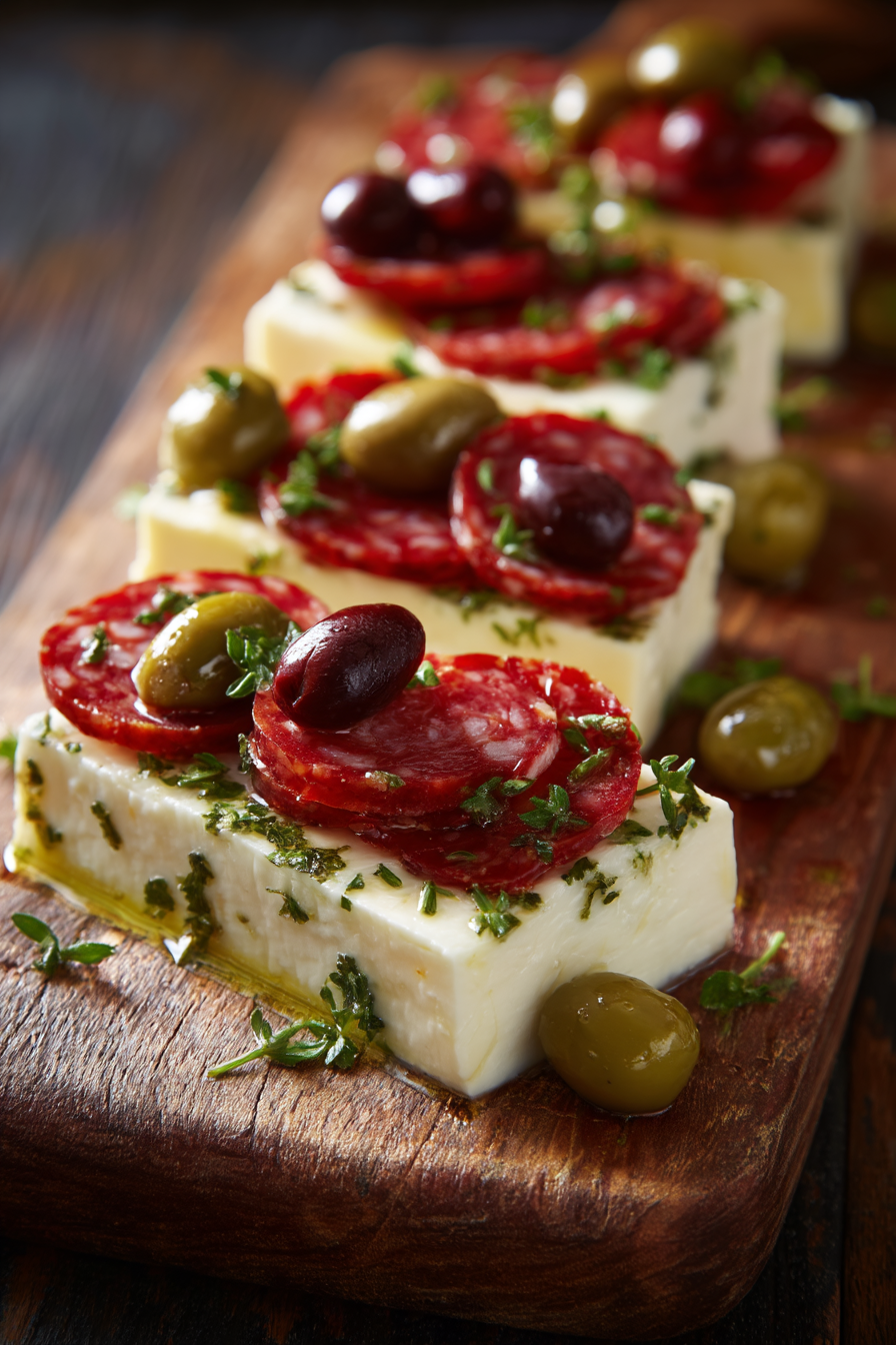 Easy Marinated Cheese Appetizer with Salami & Green Olives
