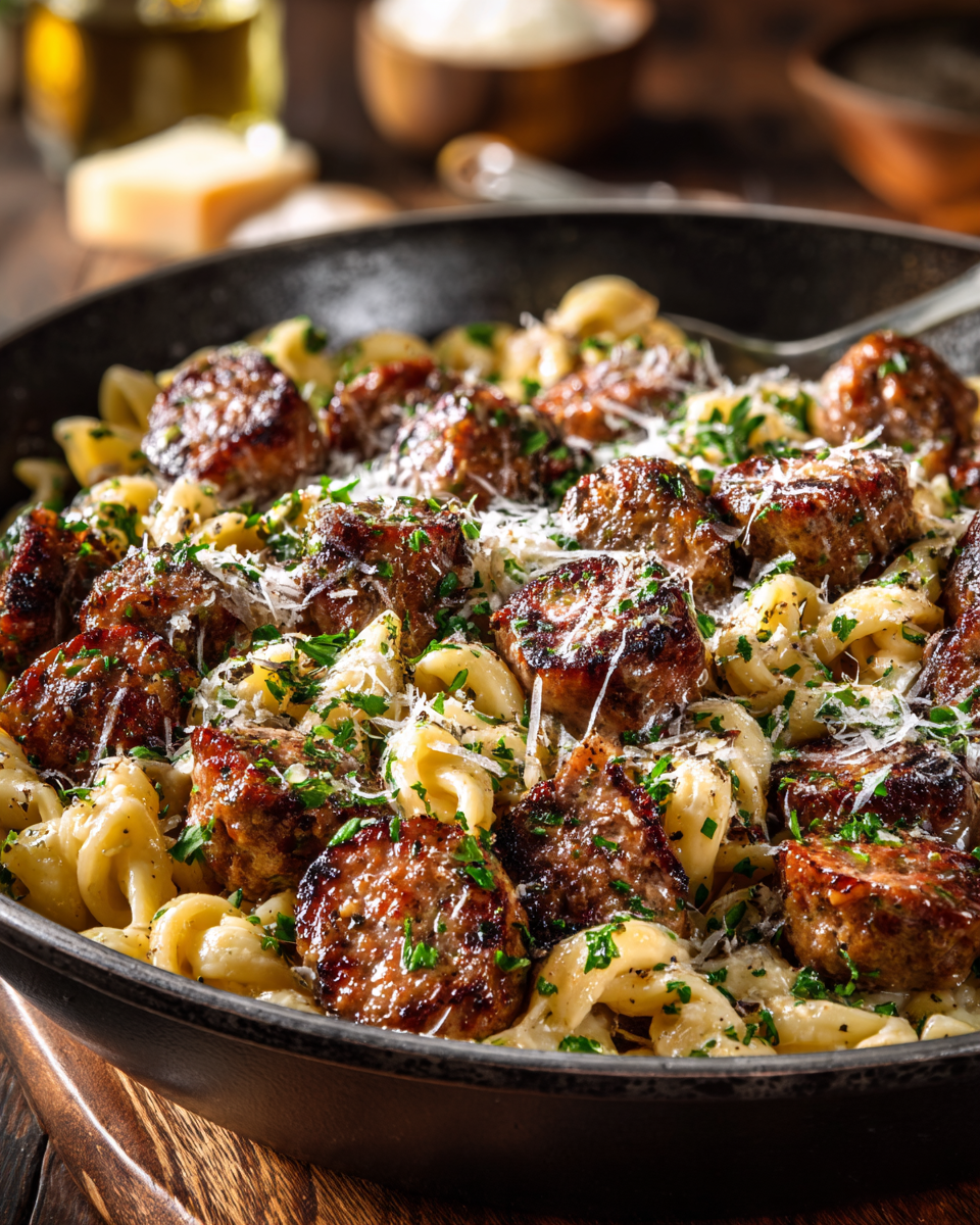 You get that initial hit of garlicky buttery aroma and then the savory sausage bites hit your tongue so quick they make you close your eyes for a sec. The creaminess and the slight bite from the Parmesan make each forkful feel like a warm hug.