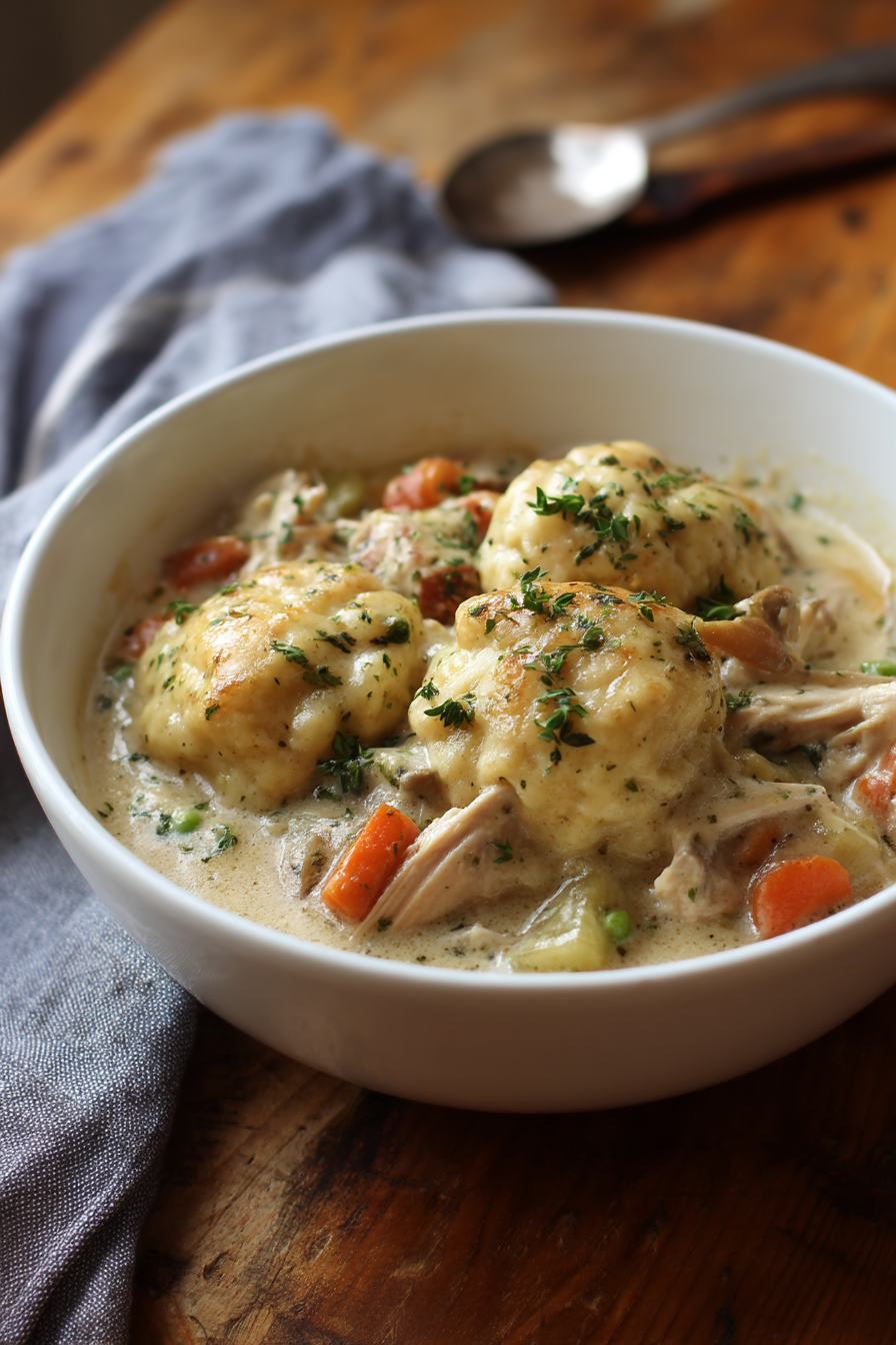 If you want your chicken and dumplings extra creamy, stir in 1 cup of coconut cream or heavy cream just before you serve it for a richer taste.