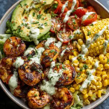 I learnt then that cooking is part science and part story. I saw how protein char changed color and texture right before my eyes. That smoky scent wrapped around me and pulled me deeper into each moment. I didnt even know that someday Id use that same feeling to make Grilled Shrimp Bowl with Avocado, Corn Salsa & Creamy Garlic Sauce.