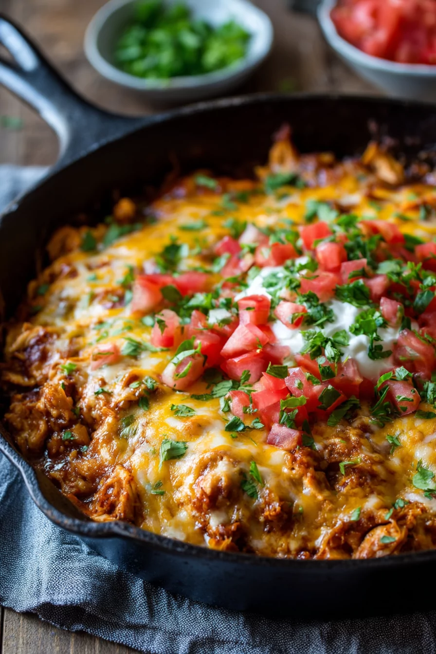 One Pot Keto Low Carb Chicken Enchilada Skillet