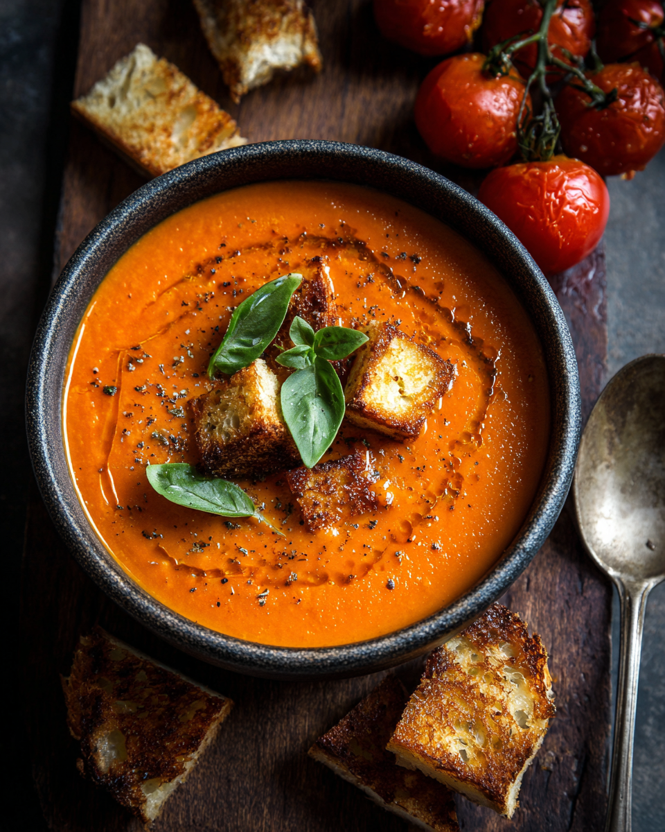The moment I lifted that spoonful of Roasted Tomato Soup to my lips the world paused. I swear you could taste the city lights and the quiet hum of my condo in every slurp. That tomato tang mingled with garlic and basil felt like a warm hug. For a second I forgot about traffic noise and work email. All that mattered was the rich broth depth melting across my tongue.