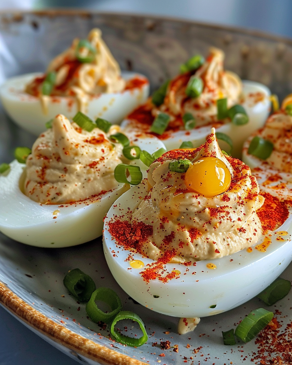 It all comes together into that satisfying combo you'll be craving at every gathering. Spicy deviled eggs done quick, with a little kick you'll remember.