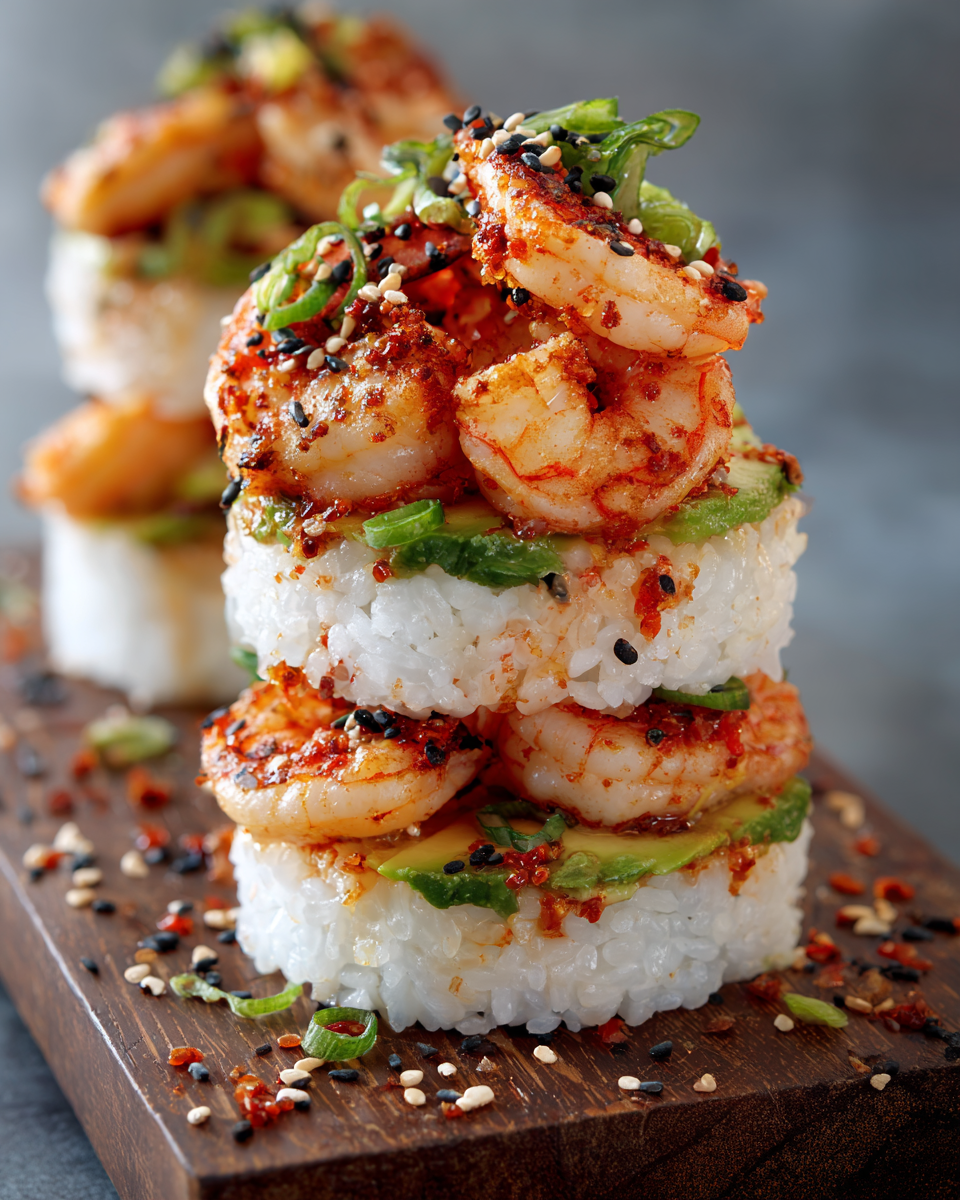 Spicy Shrimp Sushi Stacks